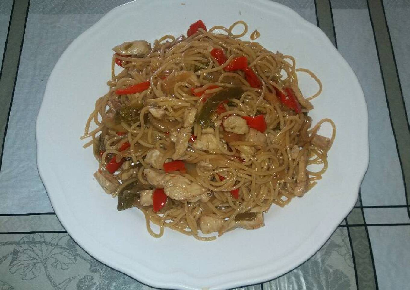 Fideos chinos con pollo
