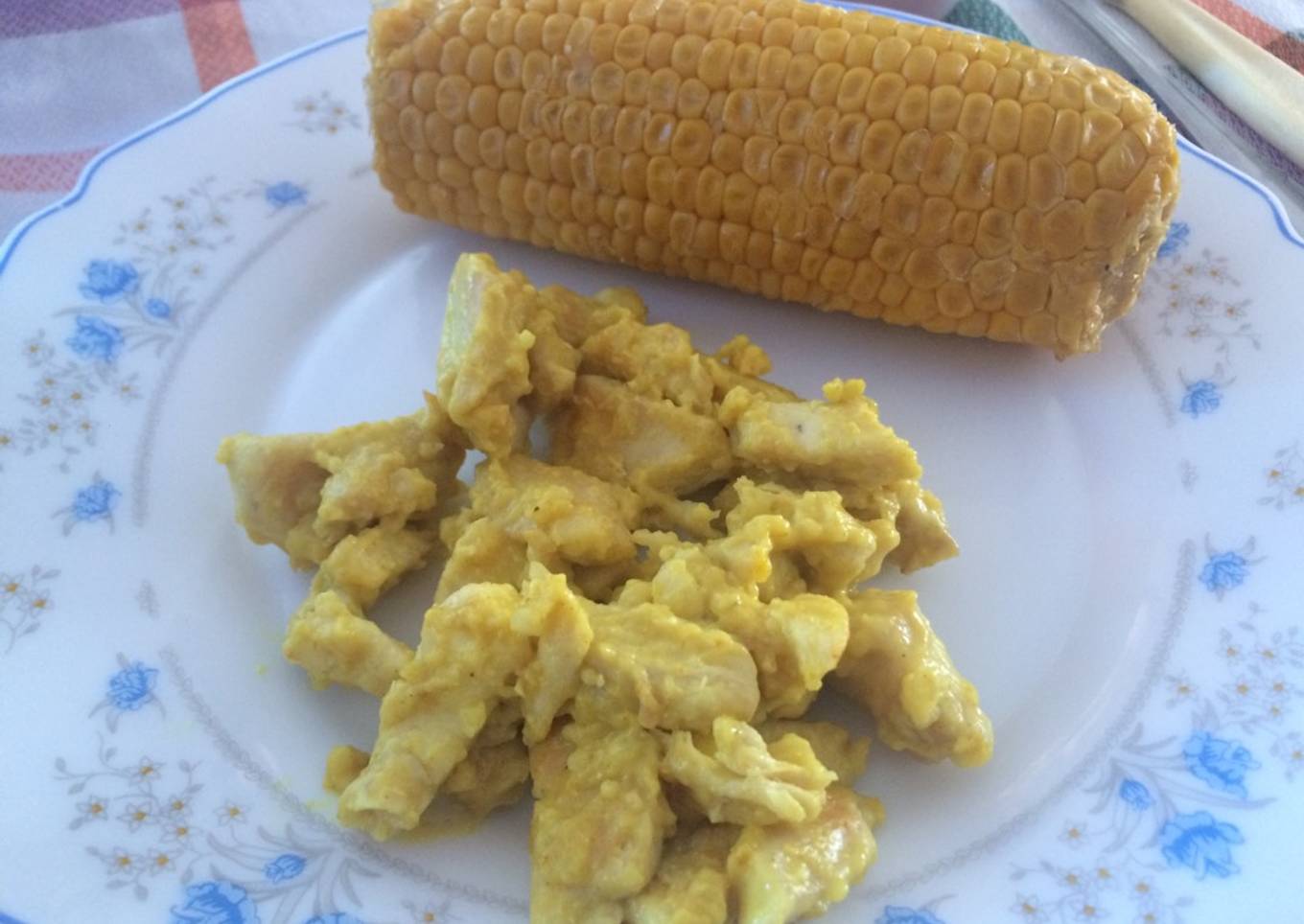 - Añadimos el pollo a la salsa. Dejamos reposar unos minutos y servimos la pechuga con algún acompañamiento, en mi caso una mazorca de maíz tostada al horno.