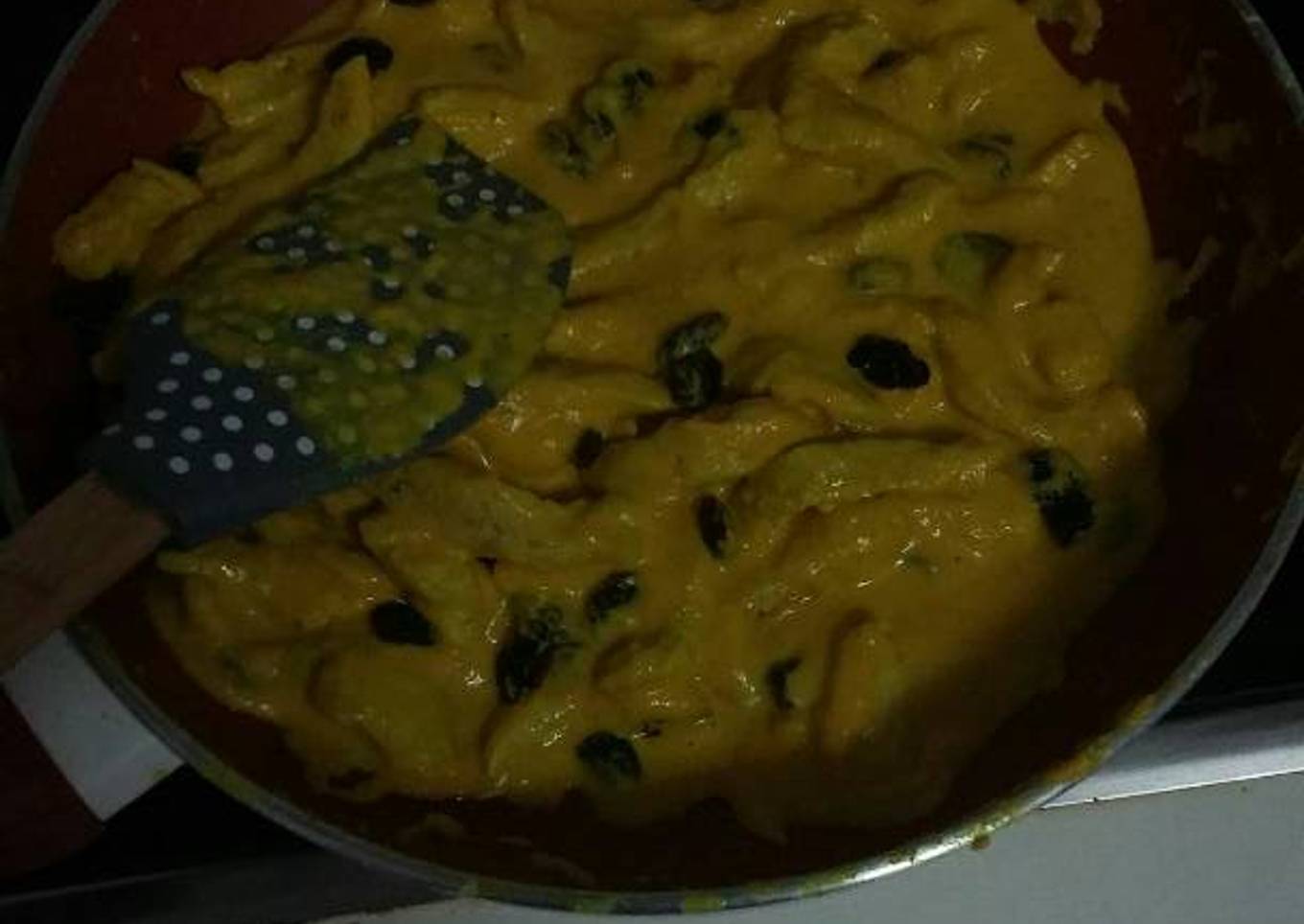 - Ya tendríamos nuestra salsa. Añadir en la misma sartén el pollo, la salsa y ahora por último las pasas. Dejar unos minutos moviendo todo y servir.