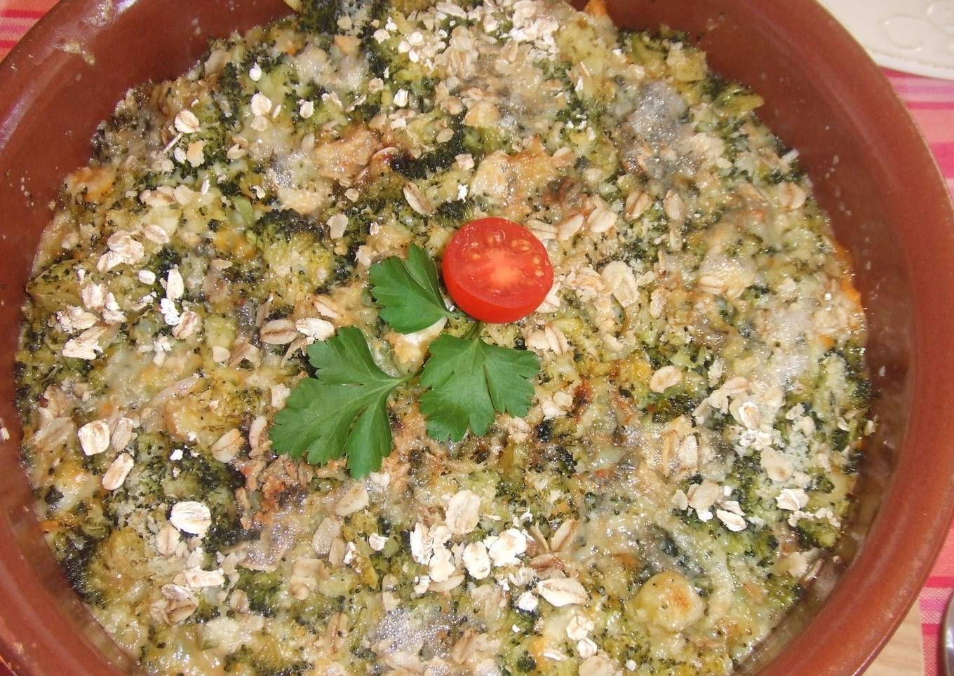 Gratinado de pollo con avena y verduras