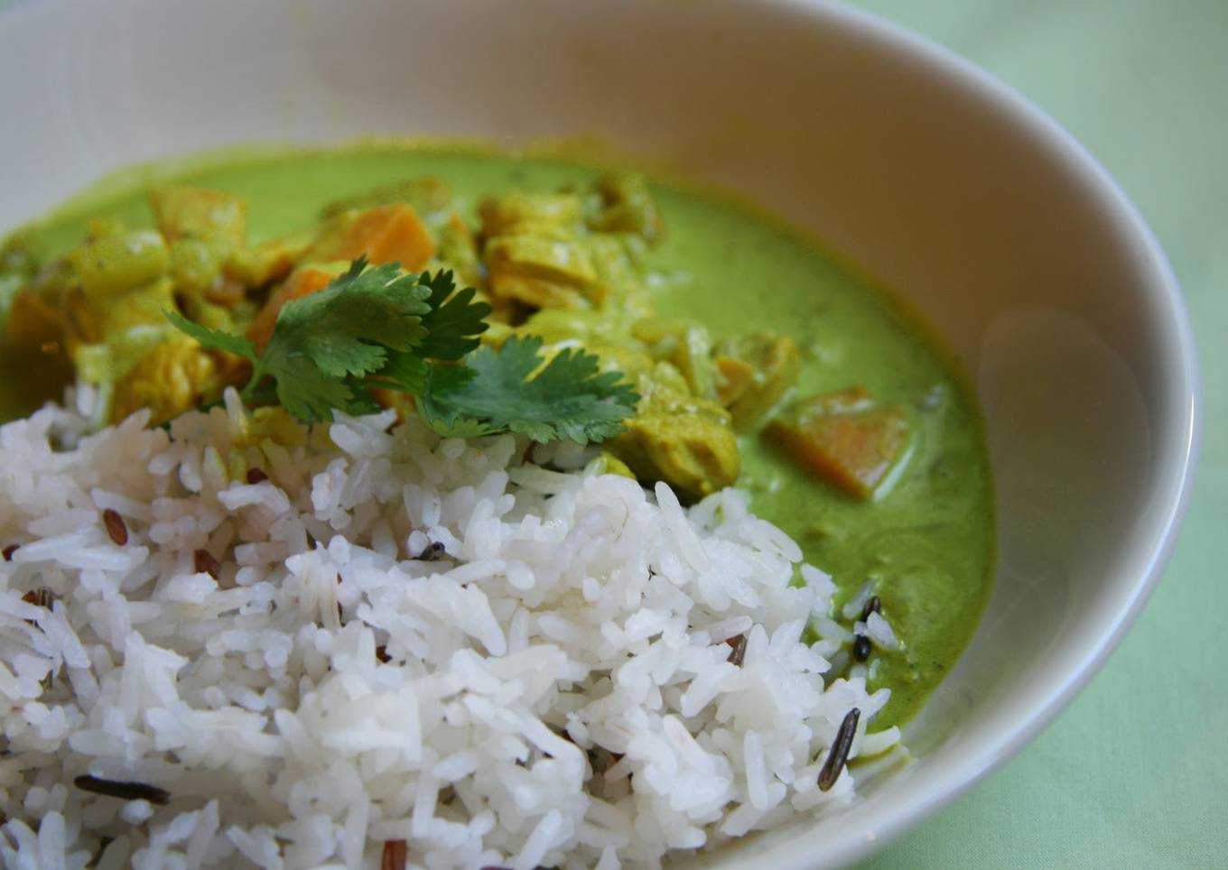 - Servir arroz hervido con curry y decorar con unas hojas de cilantro o perejil.