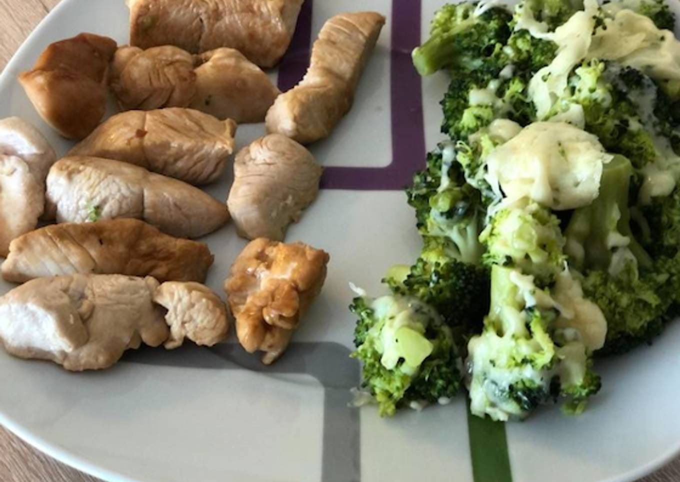 Pechuga de pavo con soja y brócoli con queso fundido