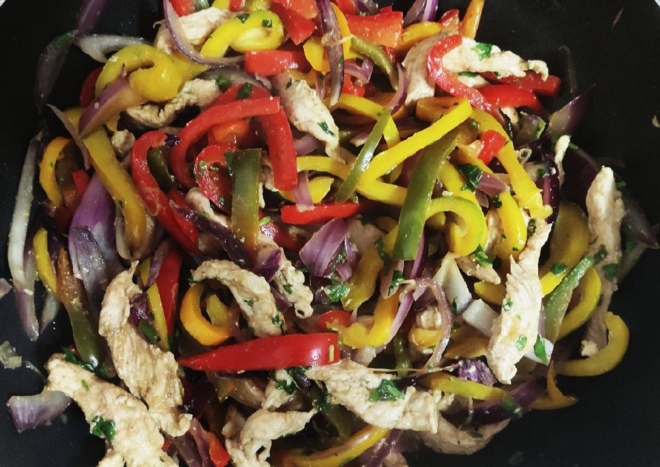 Relleno para fajitas con pimientos tricolor y pechuga de pavo