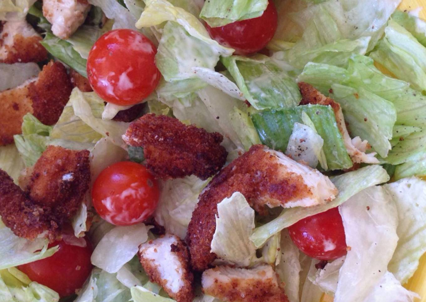 Tenía unas pechugas rebozadas de ayer que había que aprovechar y he decidido utilizarlas en una rica ensalada como primer plato de hoy :)