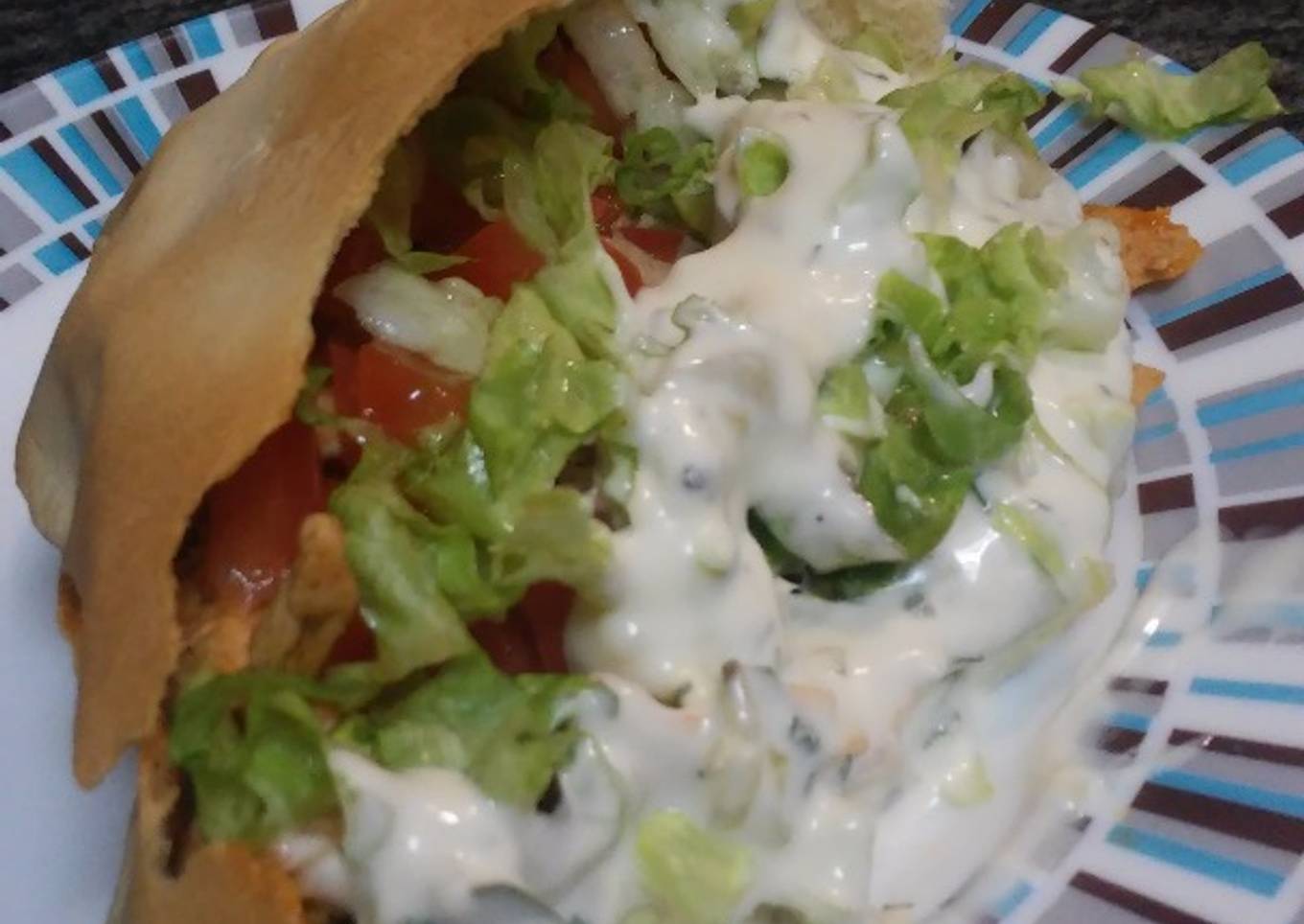 - En el pan de pita(tambien se puede hacer por nosotros) echaremos primero la carne con verdura, despues un poco de tomate y lechuga al gusto y por ultimo se vierte la salsa griega al gusto tambien.