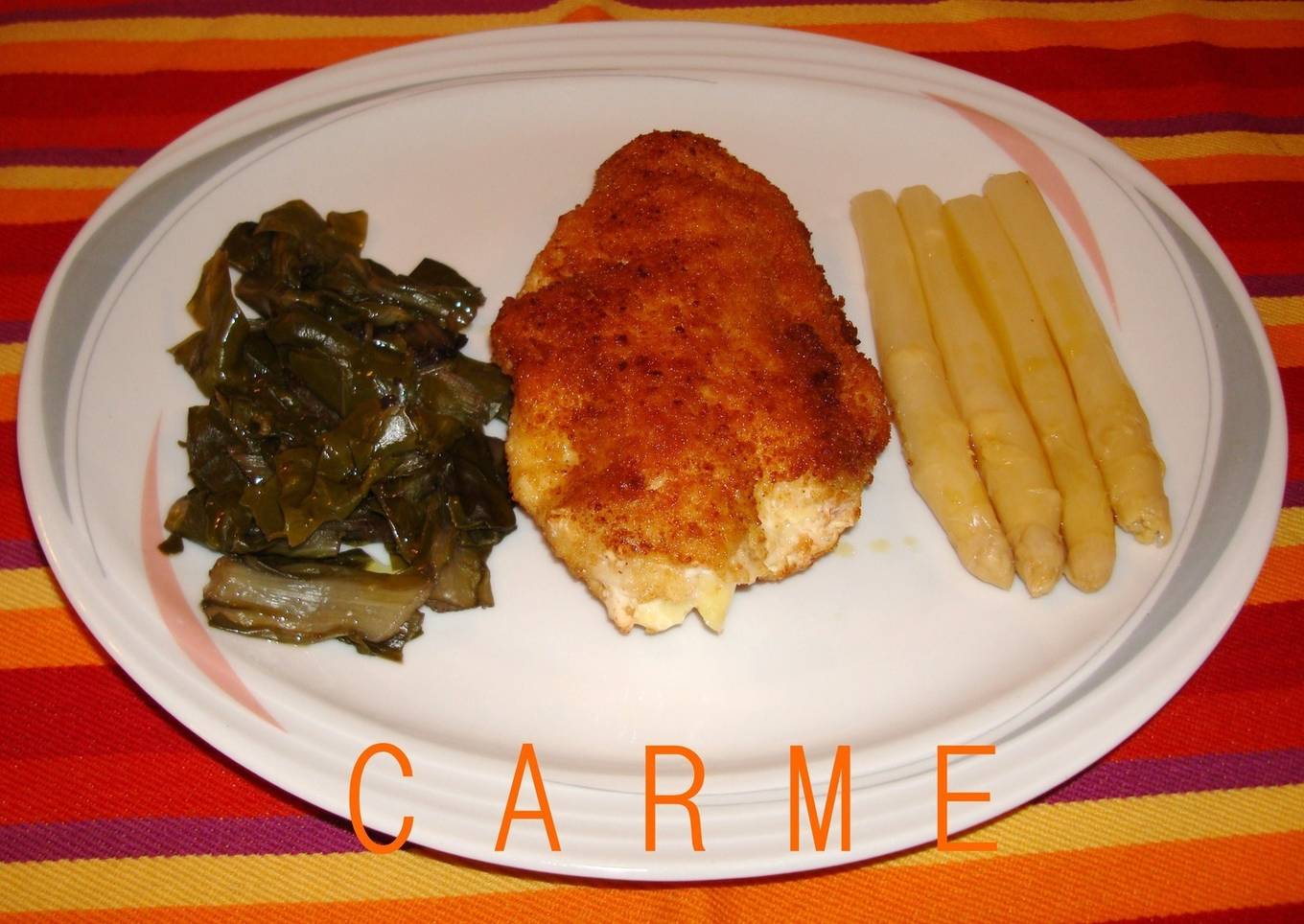 - Rellenar las pechugas con el queso, las pechugas tienen que cortarse como si fueran fileteadas, pero sin acabar de cortar en uno de los lados (como si fuera lomo de cerdo para libritos).