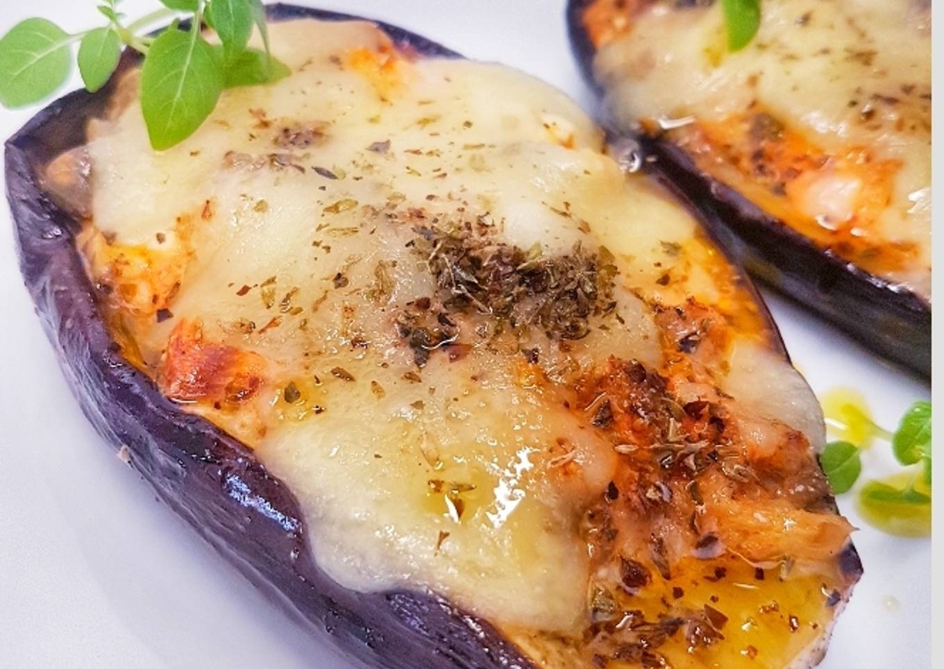 Berenjenas asadas rellenas al estilo griego