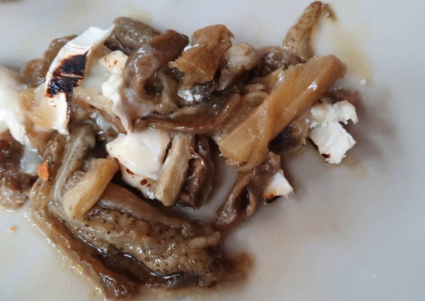- Cortar a rodajas de 1 cm cada una el queso de rulo, y partir en 4 cada rodaja. Añadir encima de las berenjenas un trozo y medio de queso y listo para comer.