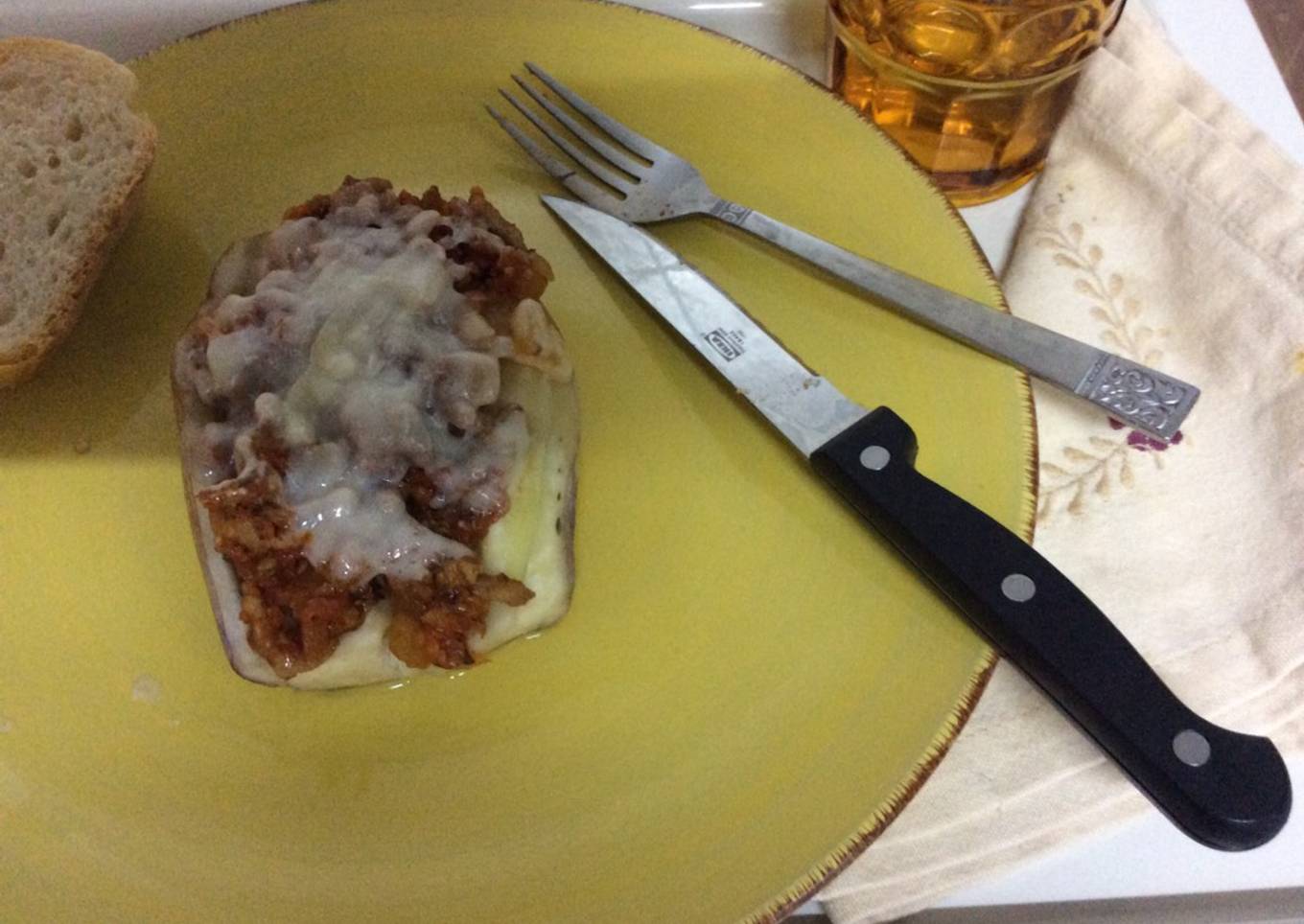 - Se echa la mezcla encima de las medias berenjenas y se pone un poco de queso encima para gratinar