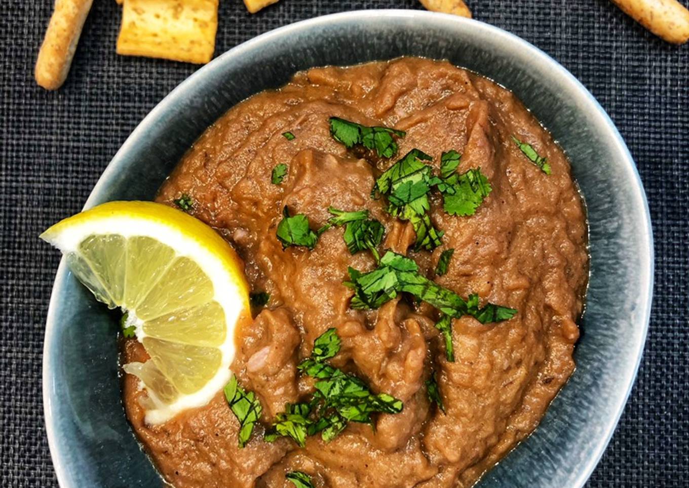 Esta receta es exquisita para dippear, no es más que un puré de berenjena cocinada con algunas especias y triturada pero no demasiado, se tiene que notar su textura. Cocinarla con un robot de cocina es una delicia por lo fácil y limpio que es.