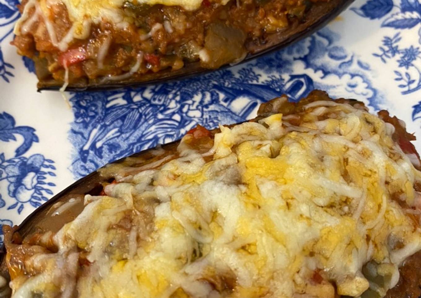 - Rellenamos las berenjenas con el sofrito, añadimos un poco de queso rallado y a gratinar al horno por 5 minutos.