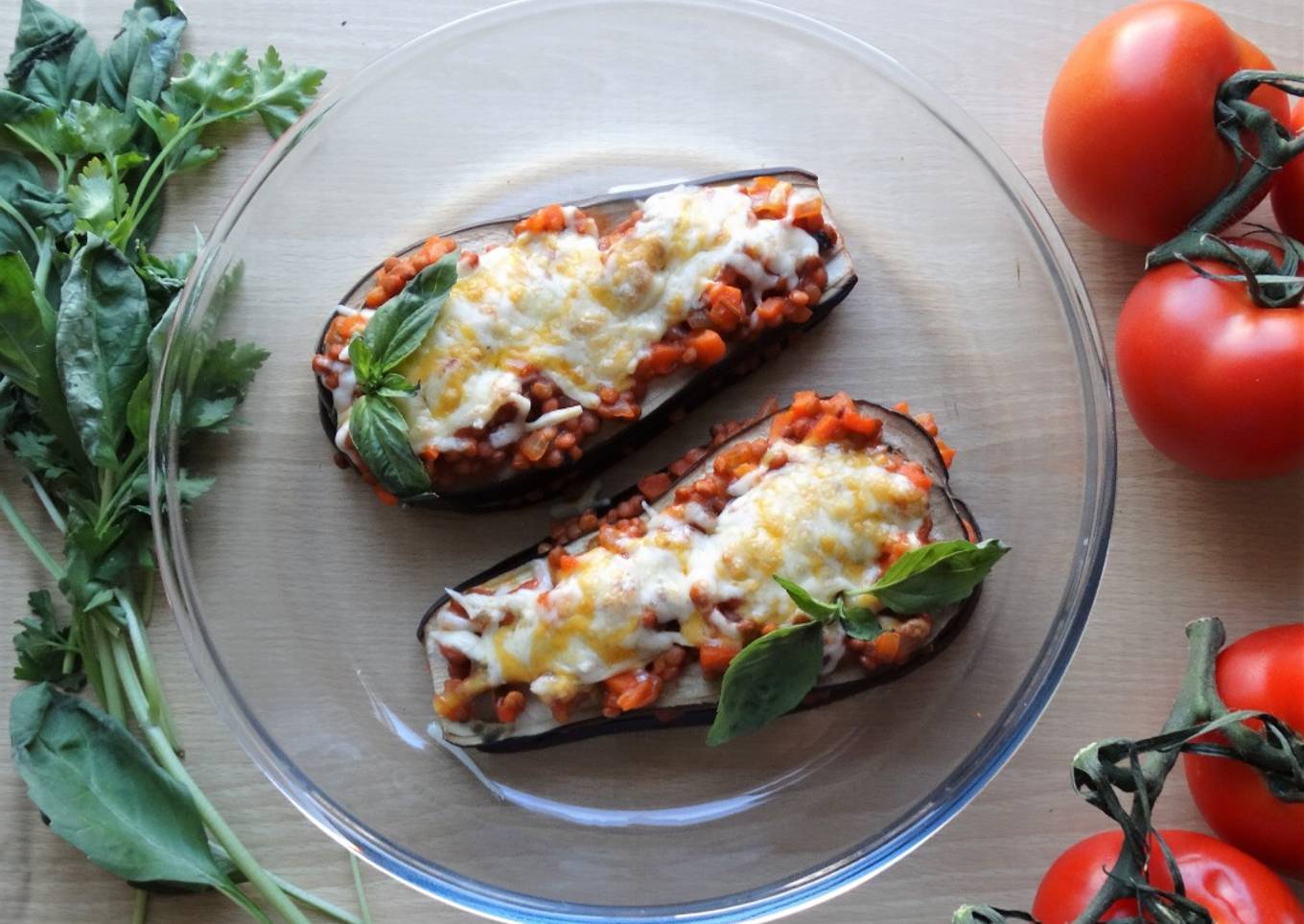 Berenjenas con boloñesa de lentejas