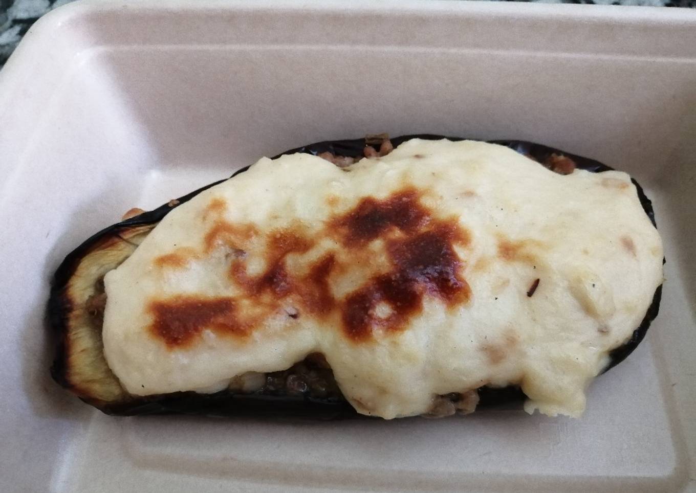 - Rellenar las berenjenas con la mezcla y poner encima bechamel bien espesa. Hornear hasta que doren.