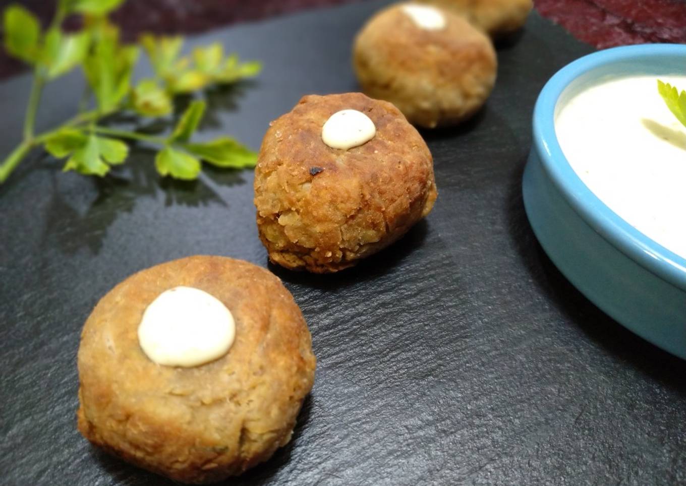 Instructions to make to make Falafel de berenjena en salsa de yogur