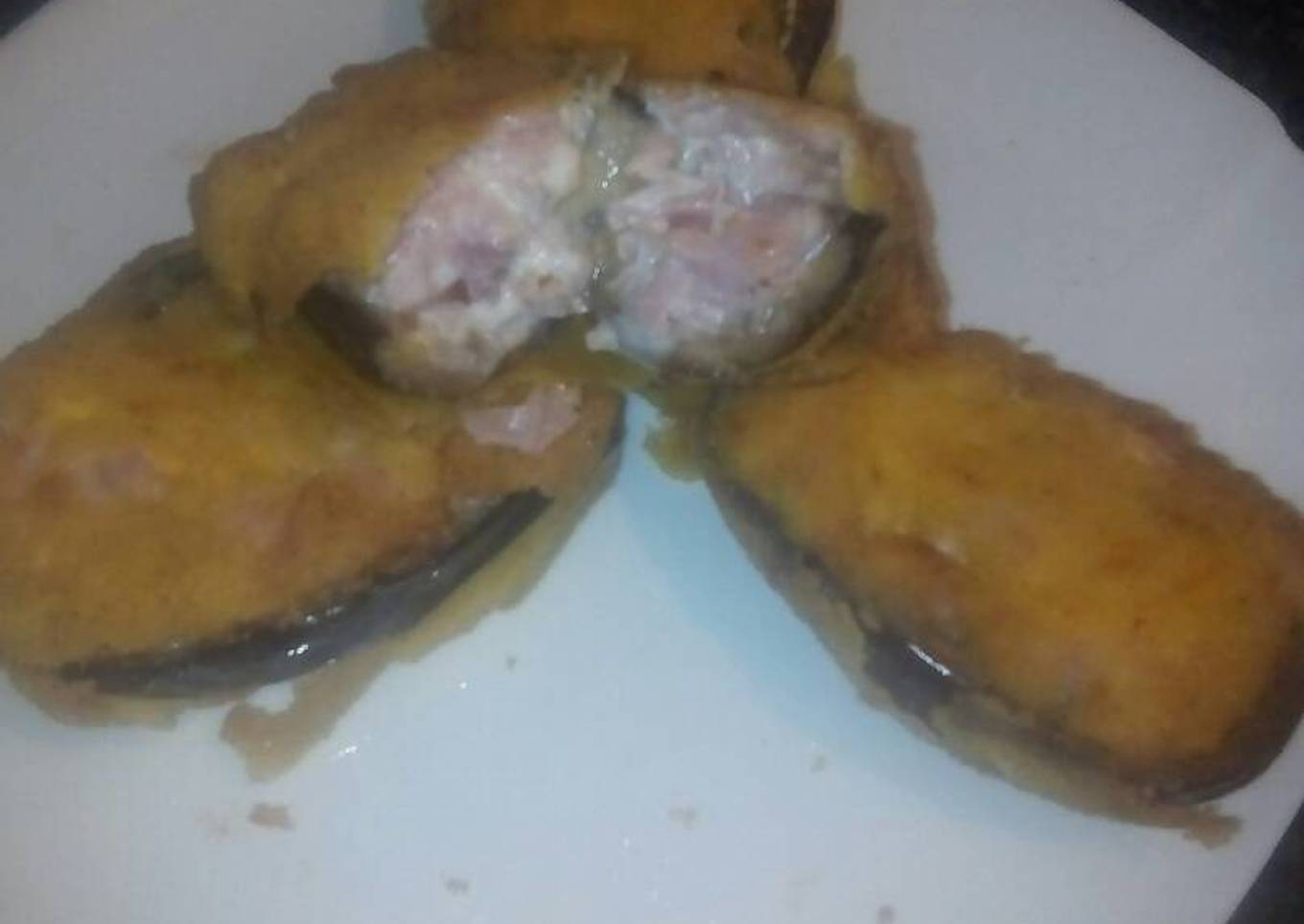 berengenas rellenas de beicon jamon york y queso en crema y enpanadas