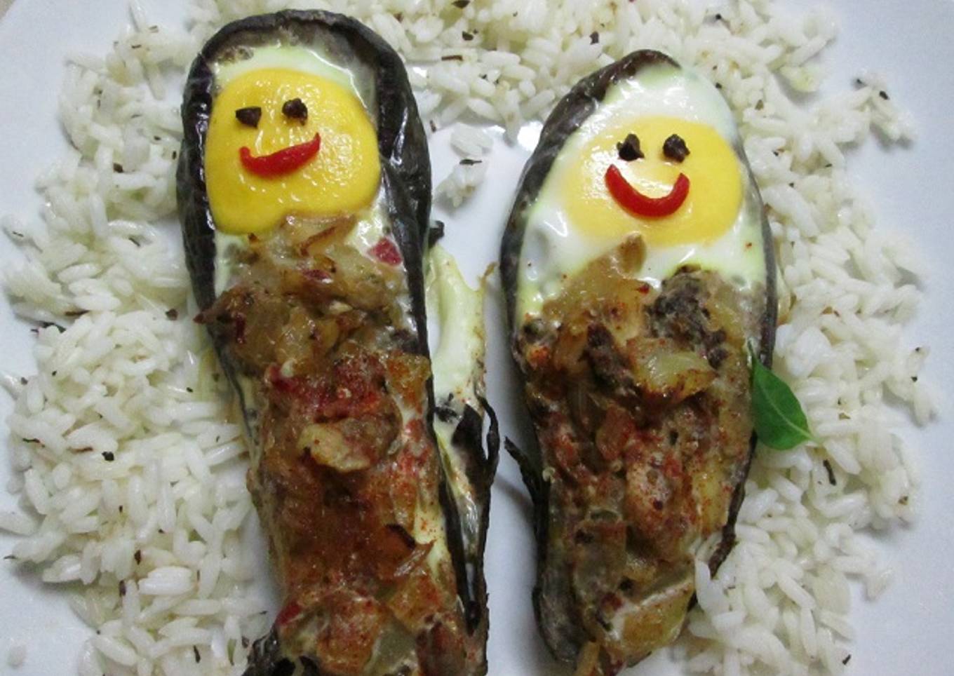 - Hornear las berenjenas rellenas hasta que los huevos queden cocidos.