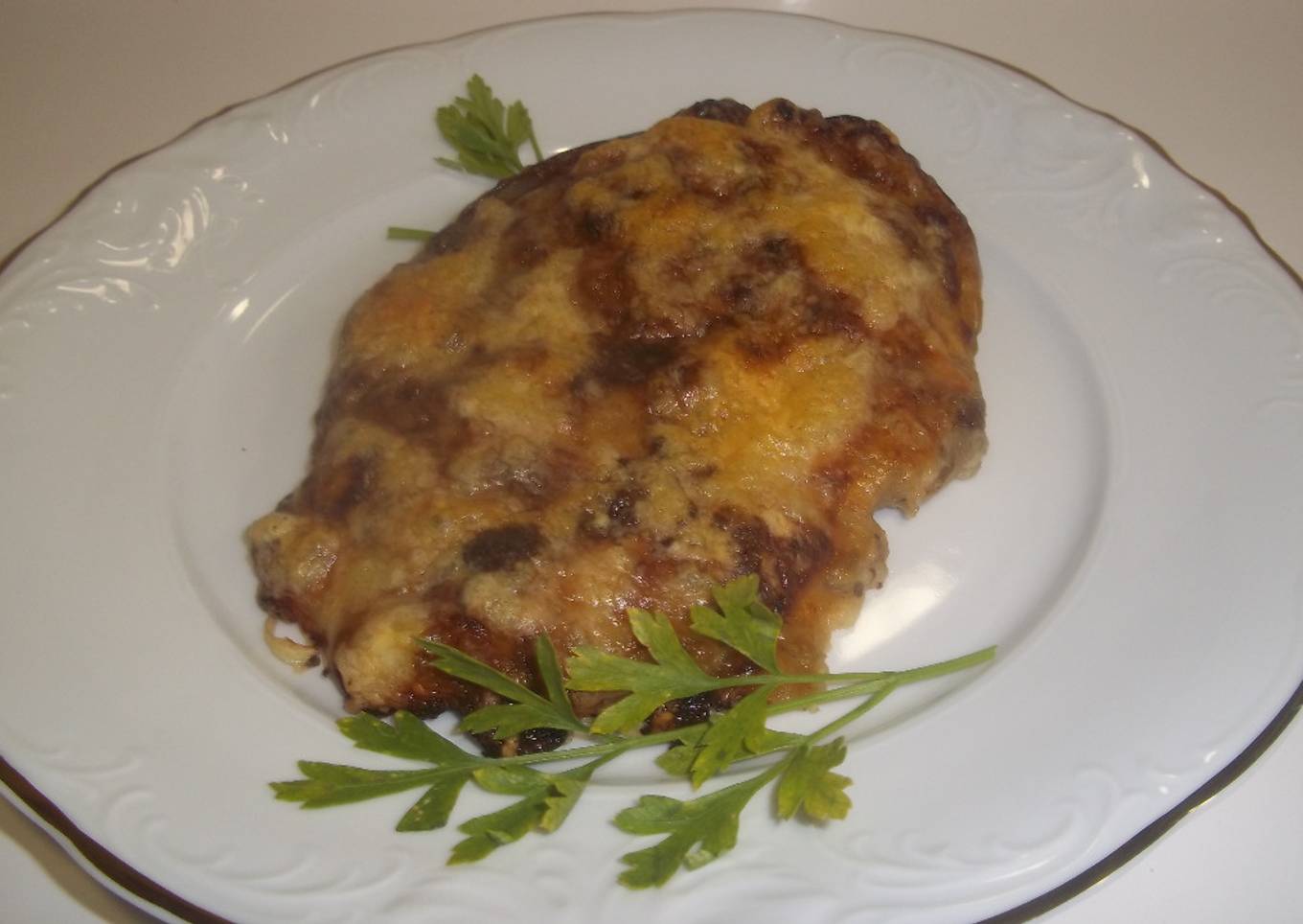 Berenjenas gratinadas rellenas de champiñones, jamón y bechamel