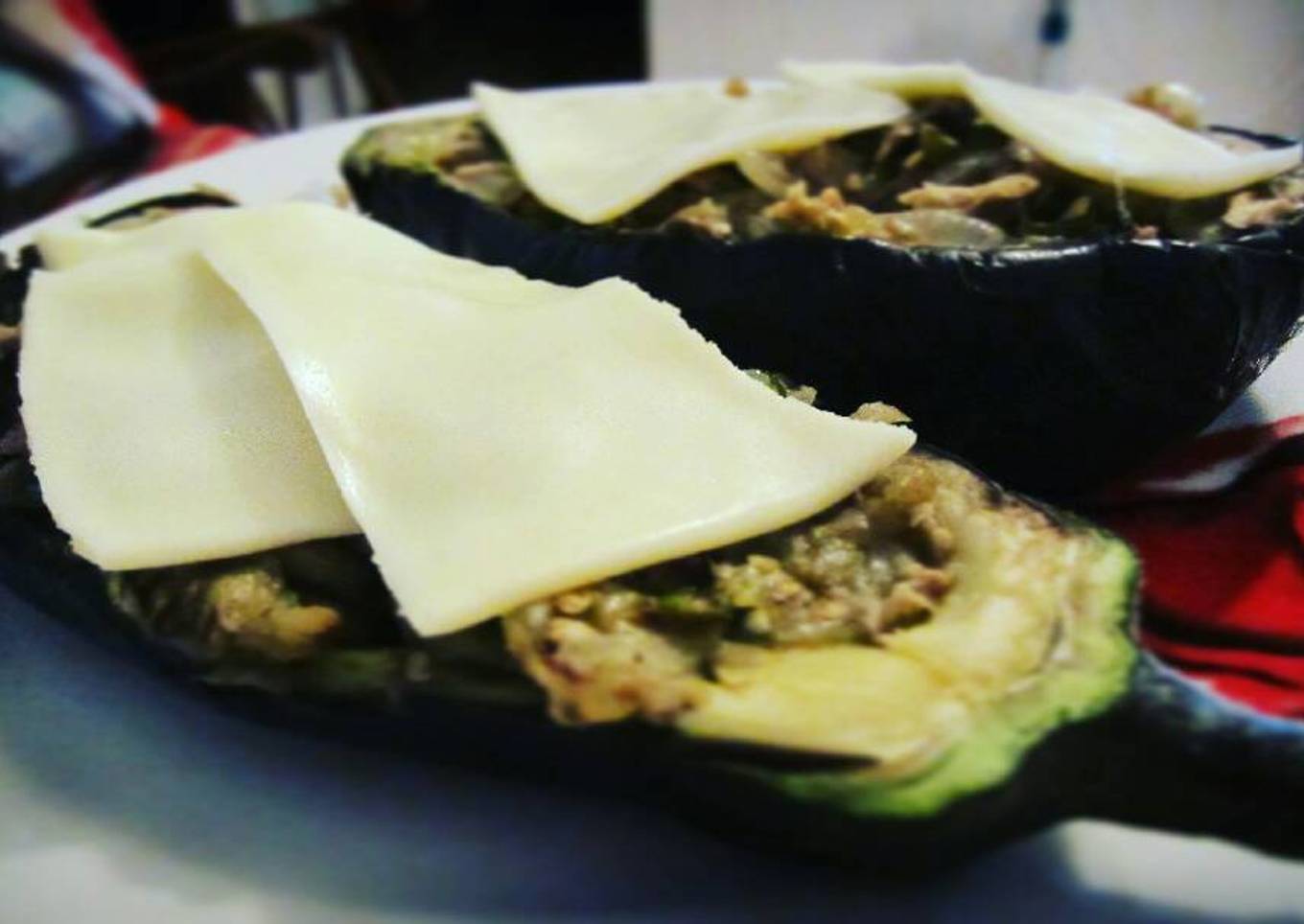 - Por último, retiramos del fuego y rellenamos las berenjenas con la mezcla. Podemos poner una loncha de queso antes de calentarlo.