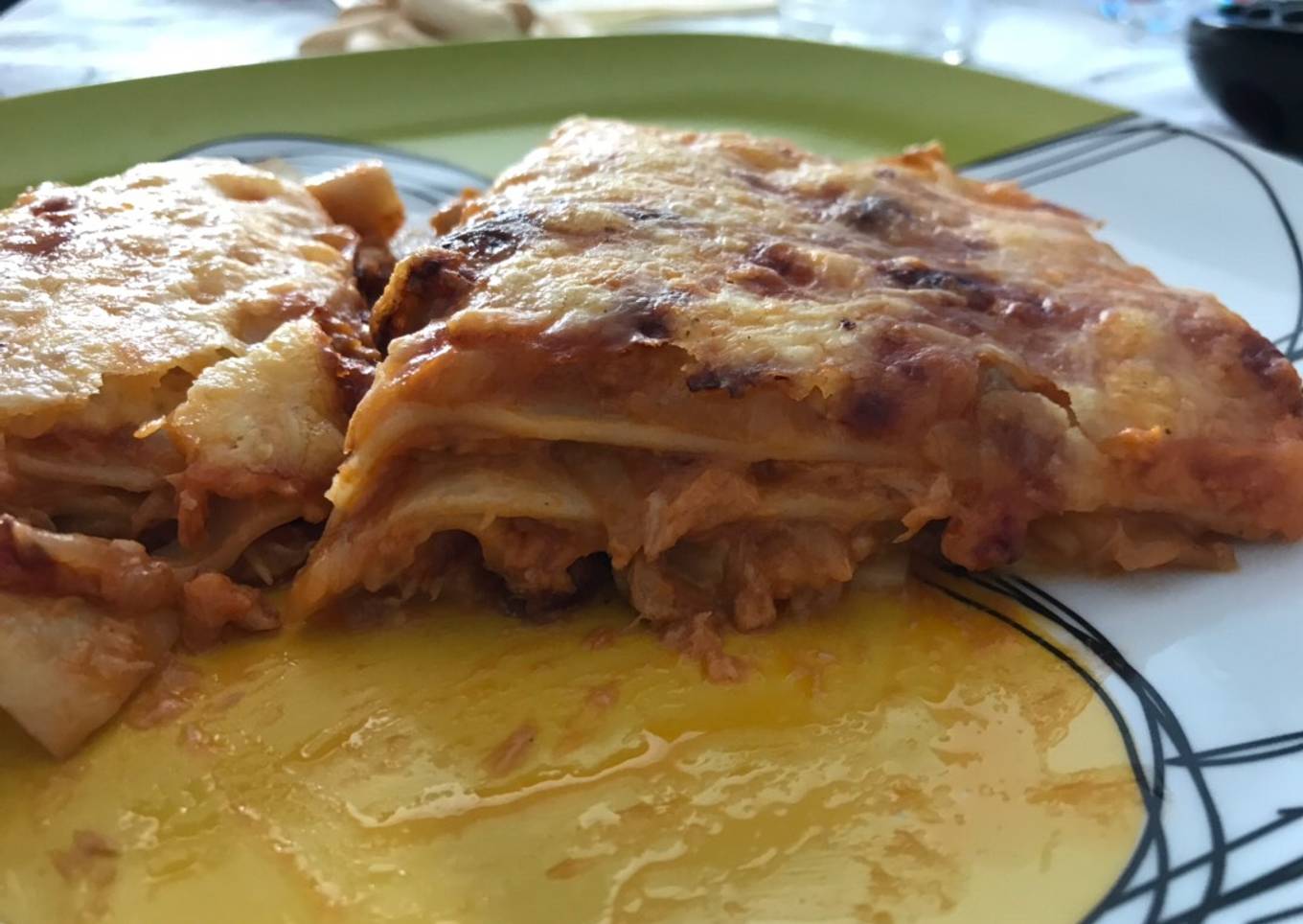 - Por último, ponemos la última capa de placas y cubrimos con un poco de relleno mezclado con queso y al horno 180 grados, 20 min
