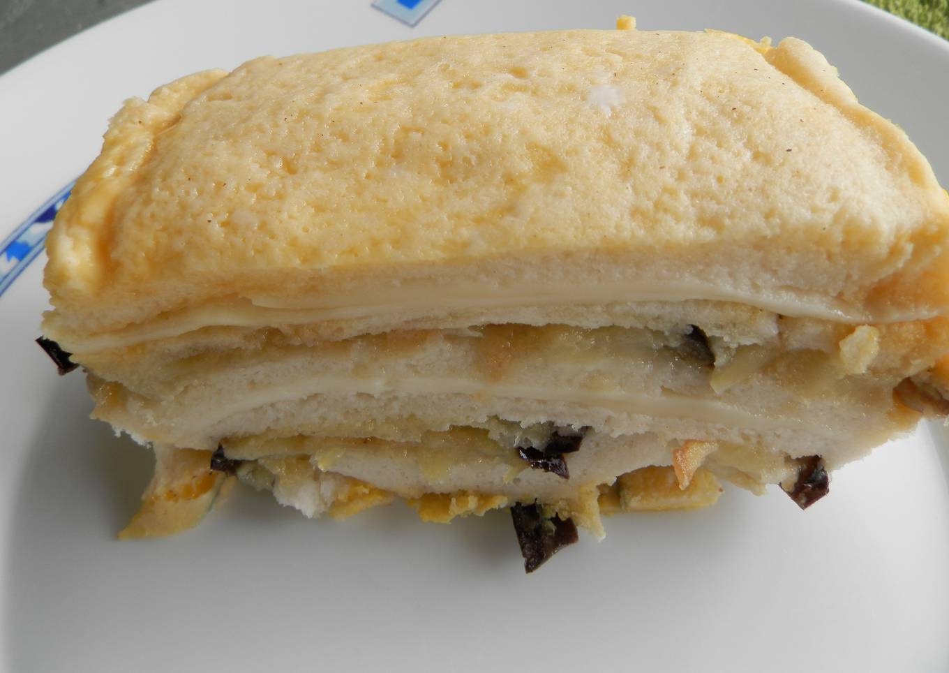 - Ponemos una capa de pan mojado en leche y escurrido,encima ponemos una capa de berenjenas, otra de pan y otra de queso hacemos asi hasta acabar con una capa de pan.