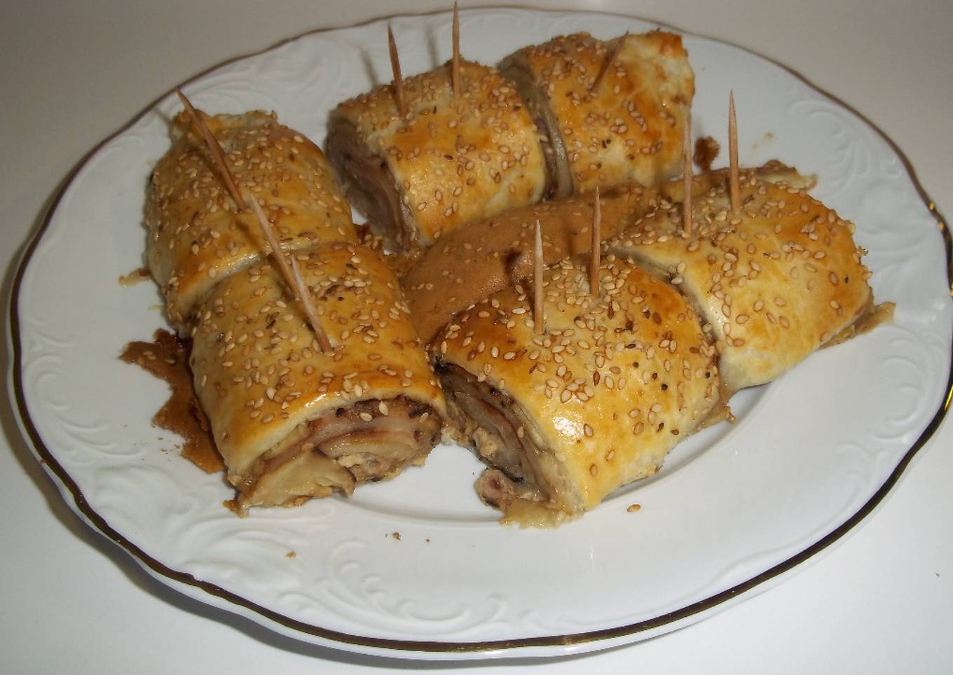 Tronco de hojaldre relleno de berenjenas y jamón york