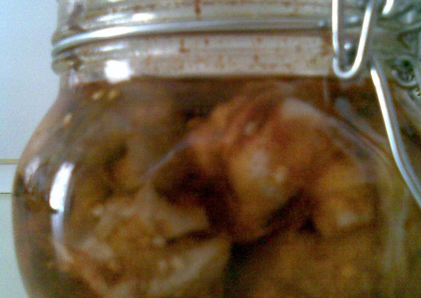 - Las pelamos, las hacemos tiras y las colocamos en tarros de cristal de conserva, las espolvoreamos con un poco de sal, la cucharada de pimentón picante y el aceite de oliva hasta que queden cubiertas, (el tarro debe estar esterilizado), cerramos, damos unos movimientos al tarro para que se reparta todo el pimentón, y conservamos cerradas hasta 3 meses.