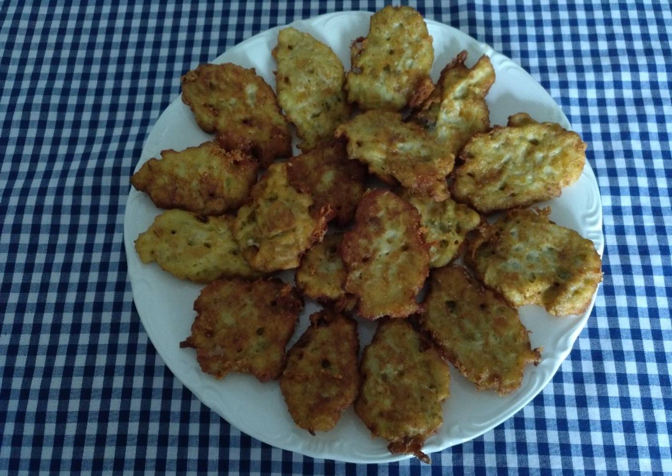 - Se pone al fuego una sartén con aceite y cuando esté bien caliente y con la ayuda de una cucharilla se forman los buñuelos y se fríen. Escurrir bien de aceite, colocar en una plato con papel de cocina para que absorban el aceite restante y no queden grasos, servir.