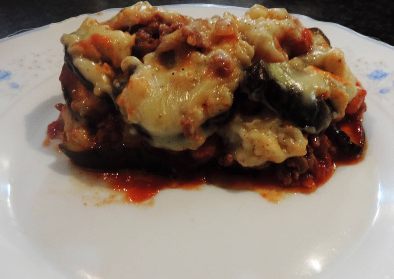 - Colocar en un recipiente para horno una capa pequeña de la salsa de tomate, una capa de berenjena, una capa de carne, otra capa de salsa de tomate; y así hasta terminar con nuestros ingredientes.