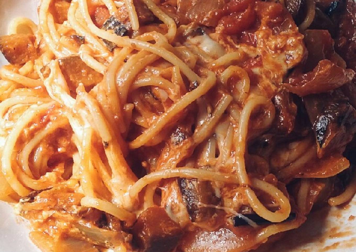 Pasta con berenjena y tomate馃崋馃崊